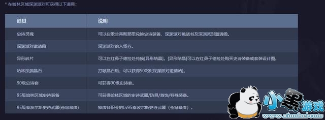 新的深渊模式是分为三种的,第一种就先来说说95版本新手玩家接触的最多的深渊派对模式,哈林地区普通深渊派对。进入需要消耗30张深渊派对邀请函,所获得的史诗装备是90-95级的普通深渊史诗装备,以及95级泰波尔斯史诗武器(95版本毕业武器-苍穹幕落系列)。