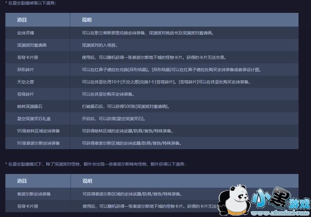 值得注意的两点:1.所有深渊都会出哈林史诗装备,并且特殊深渊包涵哈林普通深渊,也就是说90史诗装备在理论上也会出。会降低95史诗装备出的概率。(不会影响泰波尔斯史诗装备的出现概率,因为泰波尔斯装备是打星空或者星云裂缝出现的泰波尔斯内的特殊精英怪产出。例如:罗纳时空-特定NPC深渊怪物掉落)。2.苍穹卡片册,获得的卡片无法交易,不知合成宝珠后是否可以交易!