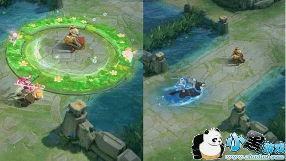 大招特效:召唤荷塘传送法阵,两只猫咪在上追逐。