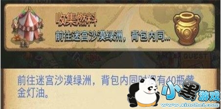 找到迷宫沙漠绿洲,在这里完成收集燃料定向越野,要求是背包里面要同时装有40瓶金灯油。