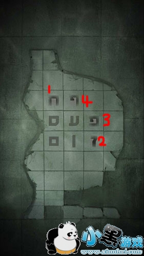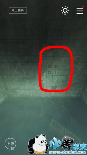 探照灯打开后,我们滑动屏幕,视角移动到左侧墙壁。可以看到如下符号。