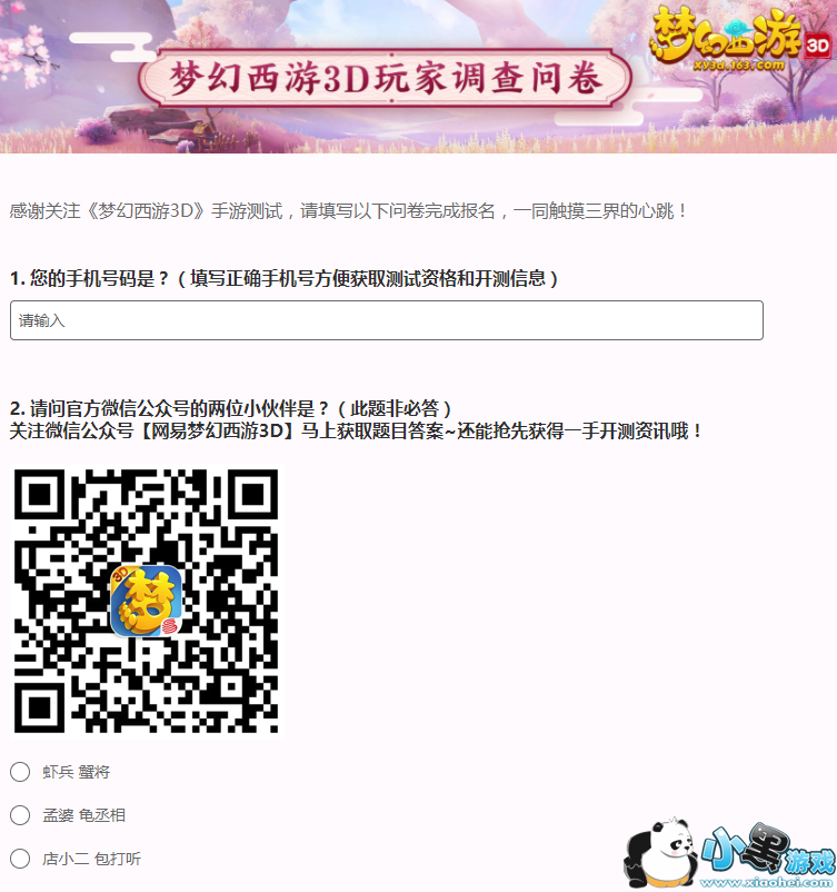 进入报名地址之后,填写一份调查问卷,写好之后点击提交,等待游戏通知。