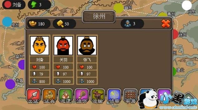 比较休闲的一种三国游戏,基本上就是武将的天下,游戏中的策略是大家最喜欢的元素,前期的难度有点高,坚持下去就OK了,建议在中期的时候带80以上的将领,例如刘备,刘备是真的厉害,开局关张97武力,选择这个基本上就是无脑平推,在选择阵型的时候,第四个没克制,可以选。