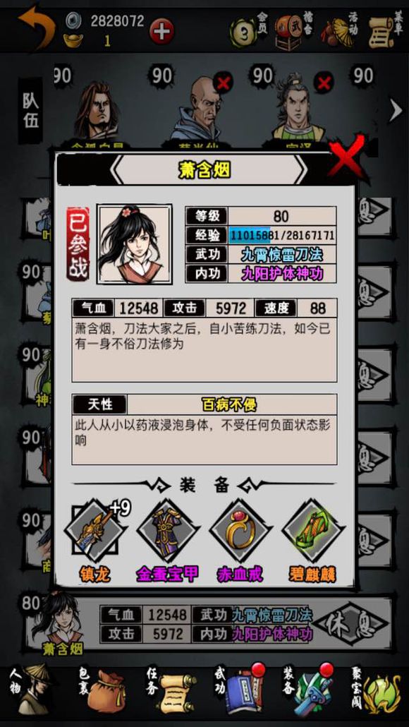 内功:气引术 浑天真气(这个只有一本,花和尚学了,胡休就没了。没入少林的话没有后续功法了。)