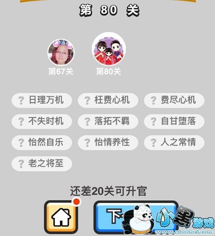 成语升官记是一款益智解谜类的手游,但是玩家在进行费脑的成语解谜游戏的同时,还能体会到模拟养成类的乐趣。从秀才开始走向人生巅峰。下面小编为大家带来的就是成语升官记第80关的过关答案,一起来看看吧!