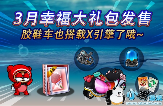 跑跑卡丁车胶鞋车X怎么得?跑跑跑卡丁车在3月新上线了许多的稀有道具,而这次的3月幸福大礼包中,不仅有新道具,还有不少以前的稀有道具的回归。今天小编就来给大家介绍一下跑跑卡丁车3月幸福大礼包里面的内容吧,如果还有不清楚的小伙伴,接下来就和小编一起来看看吧!