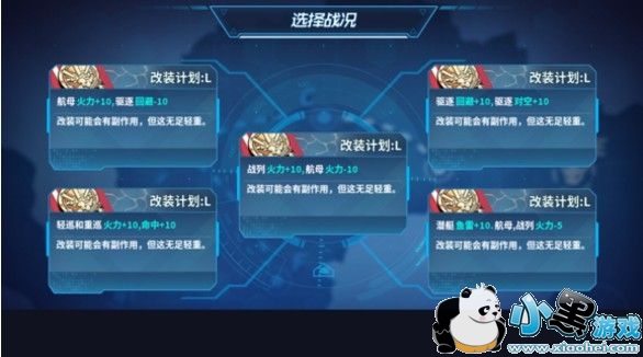第一个选择U国舰娘火力+15,装甲-10,第二个选择航母火力+10,驱逐回避-10.