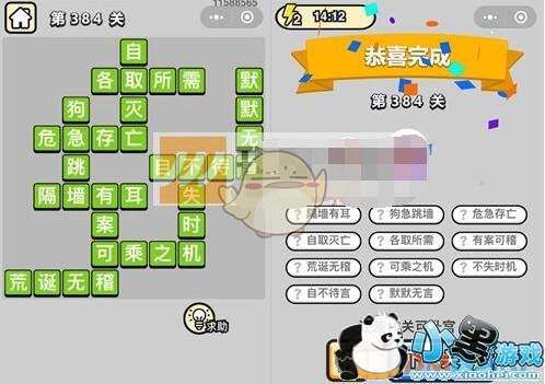 以上就是微信成语升官记九品芝麻官第384关的全部内容了,更多成语升官记关卡答案攻略内容,敬请关注xiaohei游戏,小编将持续为您更新。