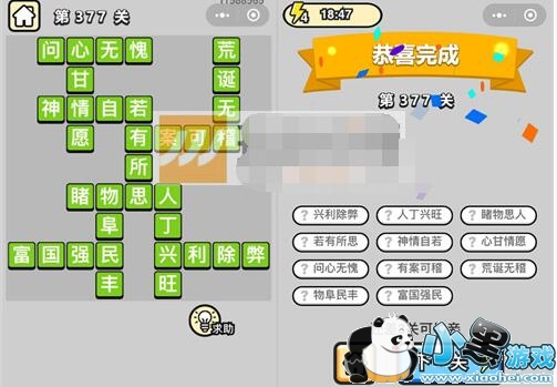以上就是微信成语升官记九品芝麻官第377关的全部内容了,更多成语升官记答案攻略内容,敬请关注xiaohei游戏,小编将持续为您更新。