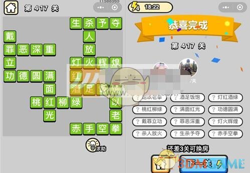 以上就是微信成语升官记八品侍郎第417关的全部内容了,更多成语升官记关卡答案攻略内容,敬请关注xiaohei游戏,小编将持续为您更新。