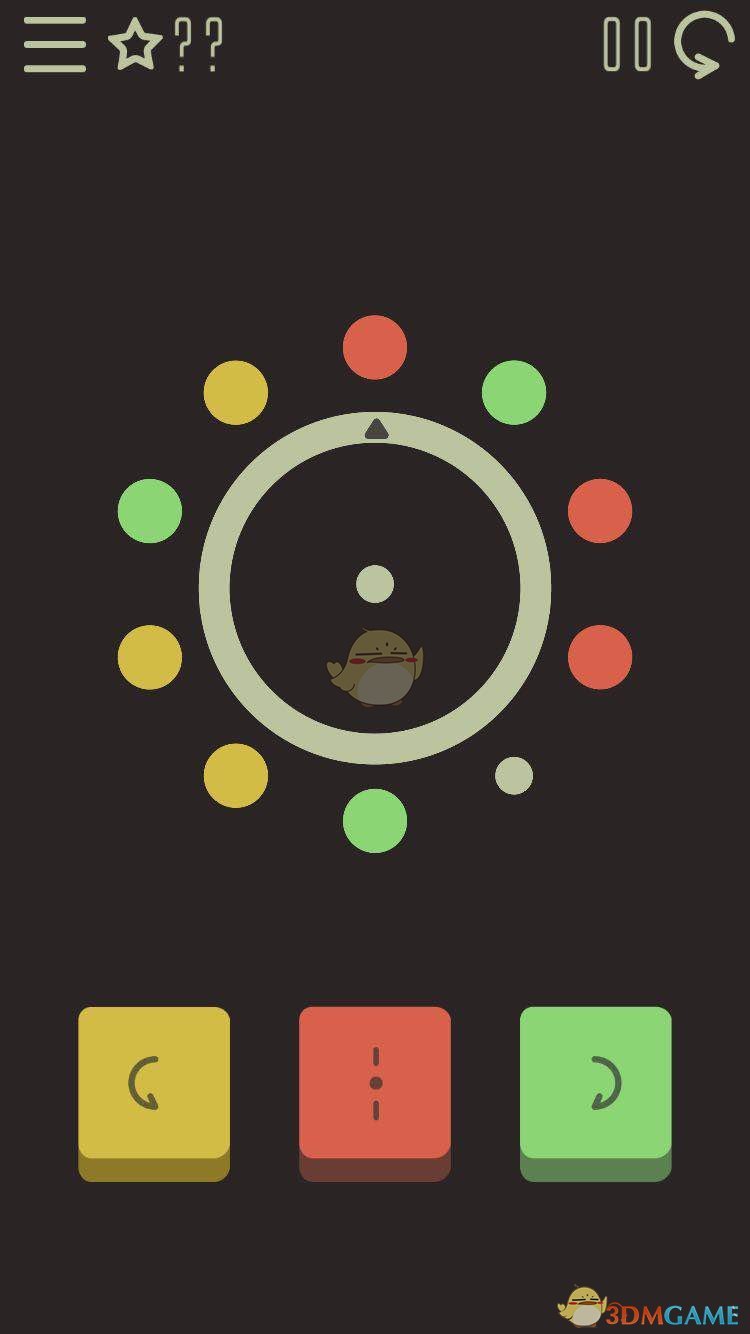 第49关还是需要玩家将图上的所有的圆都消灭才能过关,但是呢,这一关是玩家点击中间按钮就将箭头指向的圆放到中间圆心位置,然后点击旁边两个按钮选择顺时针或者逆时针旋转圆盘,然后再次点击中间按钮就是将圆心的那个圆与箭头指向的圆替换,三个相同颜色的圆挨在一起就可以消掉了。