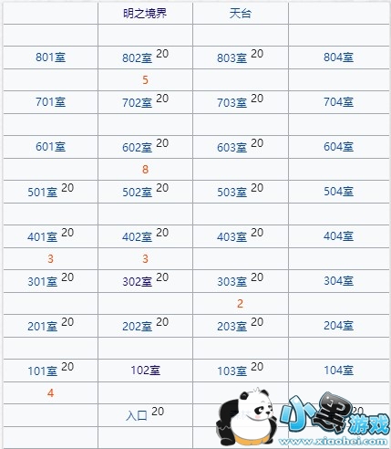 其中数量最多的为602室,有8只,这个房间是首先要去刷的,刷完之后就能去其他房间找了。