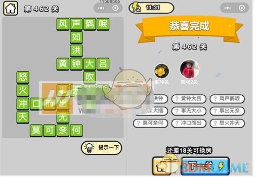 以上就是微信成语升官记七品县令第462关的全部内容了,更多成语升官记关卡答案攻略内容,敬请关注xiaohei游戏,小编将持续为您更新。