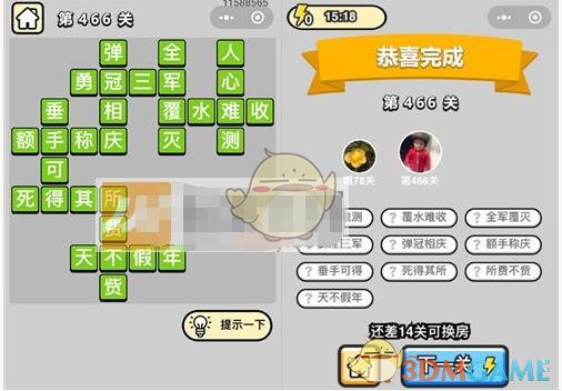 以上就是微信成语升官记七品县令第466关的全部内容了,更多成语升官记关卡答案攻略内容,敬请关注xiaohei游戏,小编将持续为您更新。
