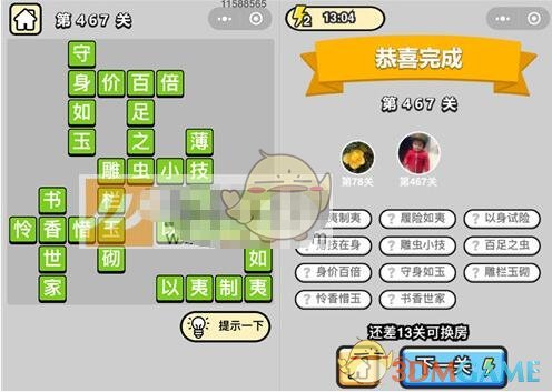 以上就是微信成语升官记七品县令第467关的全部内容了,更多成语升官记关卡答案攻略内容,敬请关注xiaohei游戏,小编将持续为您更新。