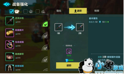 进阶:进阶能够帮助我们把低级的装备升级成高阶高品质的稀有装备。就算是新手装备也可以一步步打造成神装。每进阶三次还能够解锁额外的属性奖励。但是进阶需要消耗大量的比特和稀有材料灰色陨铁。