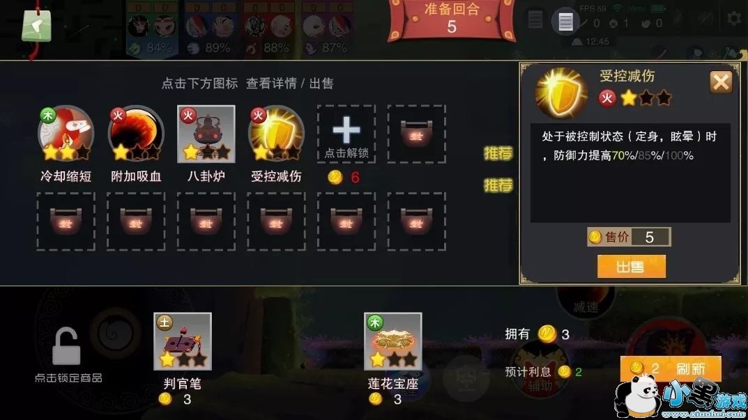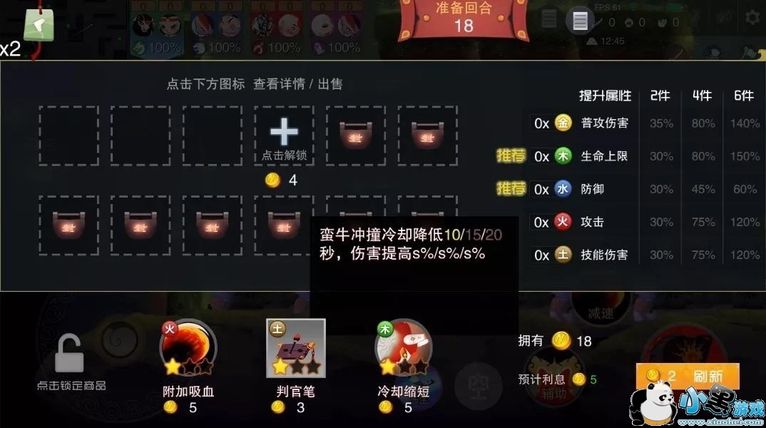 多余的已拥有物品属性可以进行贩卖(贩卖无折损),开局初始3个物品槽,可以通过消耗金币解锁物品槽,从而购买更多属性物品。