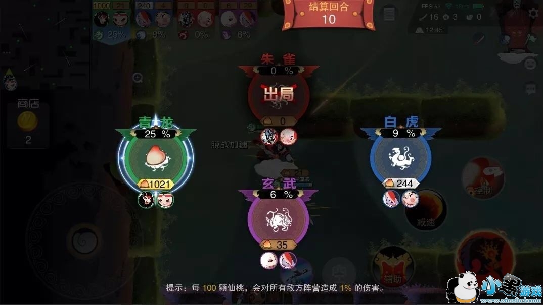 仙友们经过了准备回合,获取的属性会直接增加到英雄身上,马上和队友进入战斗开始抢桃混战,当战斗结束则会进入结算回合~