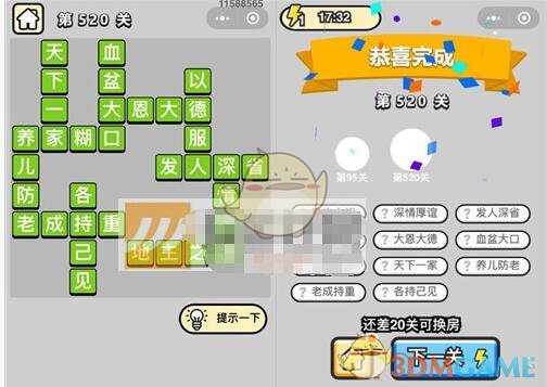 以上就是微信成语升官记七品县令第520关的全部内容了,更多成语升官记关卡答案攻略内容,敬请关注xiaohei游戏,小编将持续为您更新。