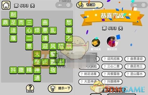 以上就是微信成语升官记五品翰林学士第633关的全部内容了,更多成语升官记关卡答案攻略内容,敬请关注xiaohei游戏,小编将持续为您更新。