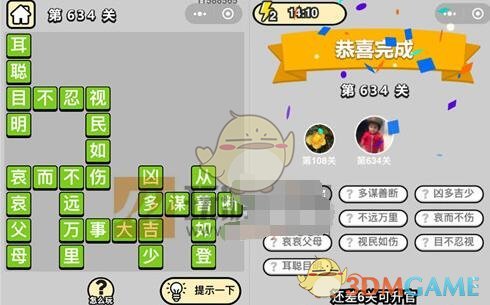 以上就是微信成语升官记五品翰林学士第634关的全部内容了,更多成语升官记关卡答案攻略内容,敬请关注xiaohei游戏,小编将持续为您更新。