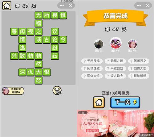 成语升官记是一款益智解谜类的手游,但是玩家在进行费脑的成语解谜游戏的同时,还能体会到模拟养成类的乐趣。从穷书生开始走向人生巅峰。下面小编为大家带来的就是成语升官记第47关的过关答案,一起来看看吧!