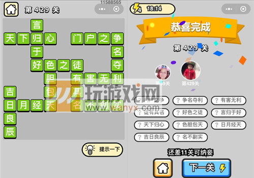 成语升官记八品侍郎第429关过关攻略详解