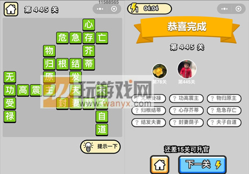 成语升官记八品侍郎第445关过关攻略详解