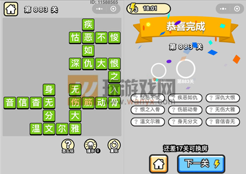 成语升官记是一款益智解谜类的手游,但是玩家在进行费脑的成语解谜游戏的同时,还能体会到模拟养成类的乐趣。从穷书生开始走向人生巅峰。下面小编为大家带来的就是成语升官记第883关的过关答案,一起来看看吧!