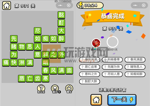 成语升官记宁远侯第931关过关攻略详解
