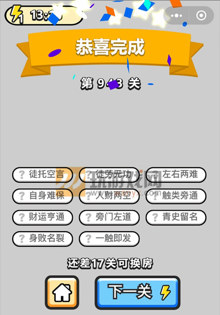 成语升官记是一款益智解谜类的手游,但是玩家在进行费脑的成语解谜游戏的同时,还能体会到模拟养成类的乐趣。从穷书生开始走向人生巅峰。下面小编为大家带来的就是成语升官记第943关的过关答案,一起来看看吧!
