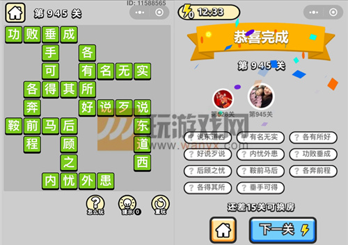 成语升官记辅国公第945关过关攻略详解
