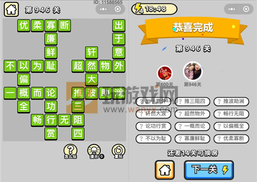 成语升官记是一款益智解谜类的手游,但是玩家在进行费脑的成语解谜游戏的同时,还能体会到模拟养成类的乐趣。从穷书生开始走向人生巅峰。下面小编为大家带来的就是成语升官记第946关的过关答案,一起来看看吧!