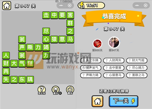 成语升官记是一款益智解谜类的手游,但是玩家在进行费脑的成语解谜游戏的同时,还能体会到模拟养成类的乐趣。从穷书生开始走向人生巅峰。下面小编为大家带来的就是成语升官记第947关的过关答案,一起来看看吧!