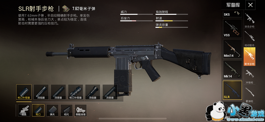 因为SLR是射手步枪,所以能使用的配件比较多,借助配件的优势可以将它的劣势弥补回来。