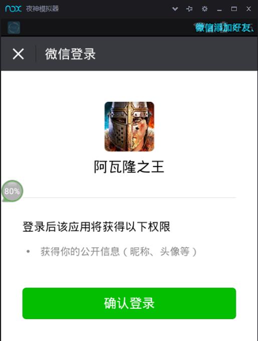 4. 模拟器(或安卓手机)打开游戏,接下来要做的操作就是在游戏中登录你已绑定过的微信账号,实现互通