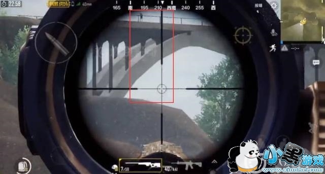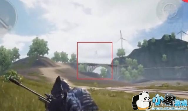 自己操作当中最常见的问题就是看见人之后手忙脚乱地为了击杀对方,慌不择路地开镜了之后,镜头根本没在对方身上。这种情况下对面不是跑路了找不到了就是对面把自己KO了。实际这个问题不光存在在狙击枪上,可以说所有带背镜的武器都会牵扯到这一点;为什么别人好像不需要瞄准就直接打过来了,咱们开镜还要瞄准半天?排除对面使用外挂的嫌疑,平心静气地说,还是自己的功夫不到位而已。以上图为例,桥上有一个大佬,已经被我们发现了,而AWM在手,怎么操作?