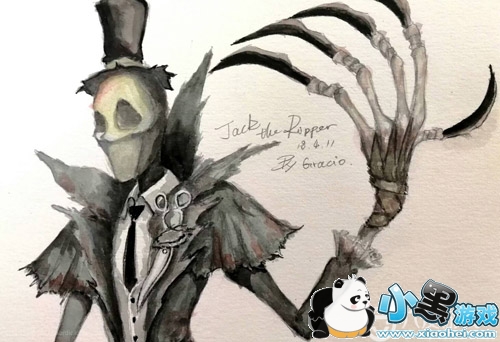 杰克的形象是一个骷颅头,有着长长的镰刀一般的指甲,当然现在杰克更像是戴了一个面具,但是不要忘记原画!坚持第五恐怖风不动摇。虽然形象可怖,但是得益于那身风度翩翩的燕尾服和那顶尽显优雅的圆顶礼帽,在一众监管者里还是很帅气的。