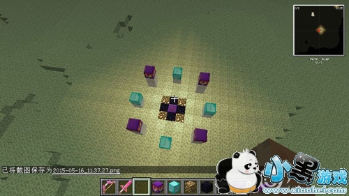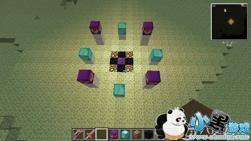 然后拿出图上的材料,中间放置复活石,周围放置黑曜石和萤石,玩家需要注意的是这9个格子是镶嵌在地面上的。