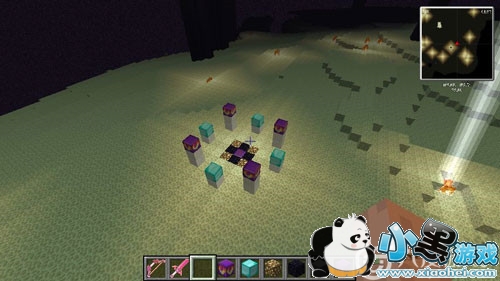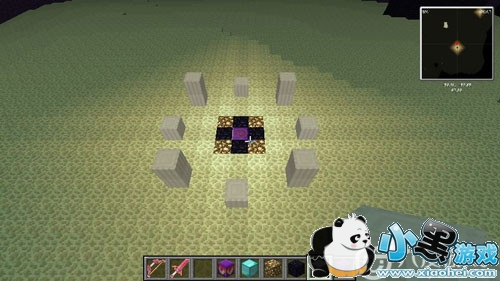 击败末影龙后,我们就来到了荒无人烟的末地,我们就要准备摆祭坛了。