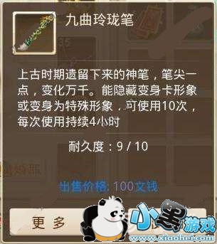 九曲玲珑笔能够用铜钱购买,不过价格比较偏高,还是非常好用,玩家想要这个笔就要乖乖存钱啦。