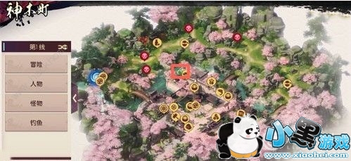 我们来到神木町以后,大家就要打开现在的地图,然后点击截图红框标记的位置,这边就是城外的一个河提上。