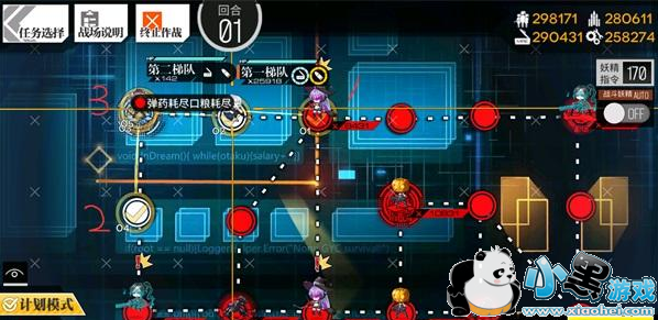 目标是红圈的三个怪,第一回合下主力队右走一步下狗粮,然后计划模式按123顺序点击,全自动到第三回合撤退主力就行。
