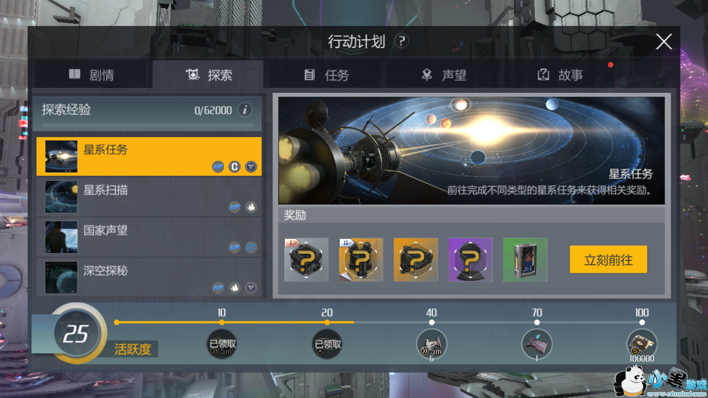 点击行动计划,选择“行动计划”中的“星系任务”,点击前往按钮。