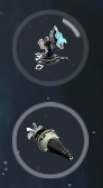 从左到右分别为:雇佣舰长状态、舰船装配的组件(可使用)。