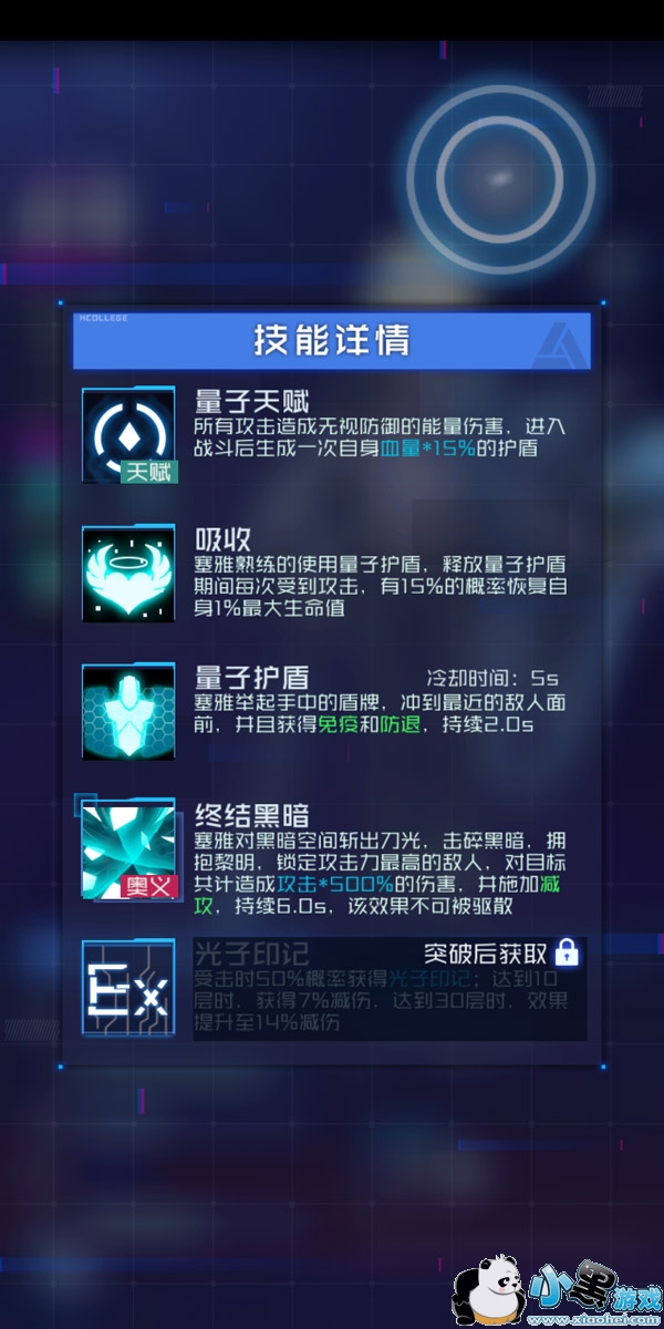 2技能 量子护盾 很强的技能 冷却只有5秒 2秒内获得50%几率免疫伤害和防击退 很强力的技能 自动释放 无法手动控制
