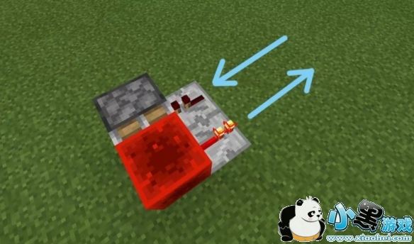 找到一块空地,侧放一个粘性活塞并放上一块红石块让它们相连,如图放置红石中继器,放置时要注意方向哦!