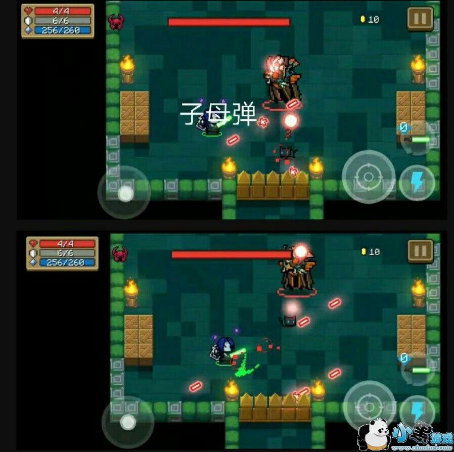 2.子母弹,发射一列母弹,并有规则地产生子弹。母弹被近战武器消灭或者碰到墙壁才会停。子弹伤害为2,母弹前行时为3,稳定后接触为2。
