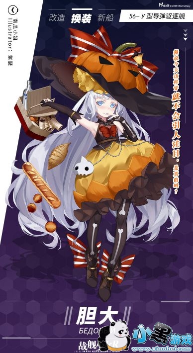 战舰少女R中万圣节装扮即将上线,下面就让我们来看看新装扮之一的56-y型导弹驱逐舰换装吧。