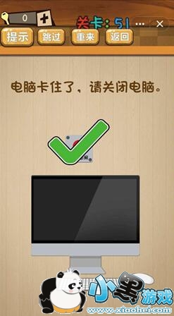 神脑洞的51关需要玩家去关闭电脑,但是玩家观察发现并没有什么地方是可以去关闭的,那么到底该如何办呢?小黑游戏这里就给大家带来了答案,快来学习吧。
